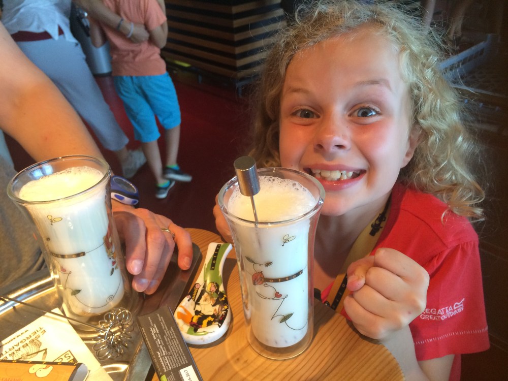 Then when we thought we couldn’t eat more. They served us warm milk with chocolate! We had to try which chocolate we would like in our milk first, before they made it – which meant more chocolate!