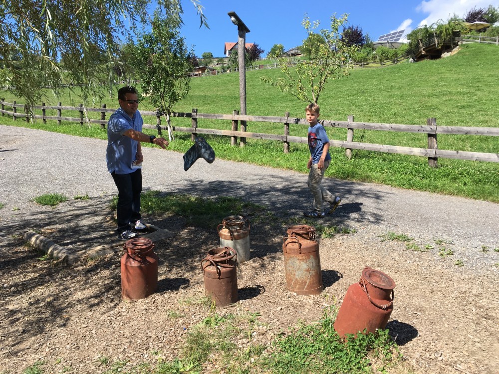 We spent a couple of hours around the organic farm. We played welly golf – throwing Boots into different obstacles- and had fun lazing in hammocks.