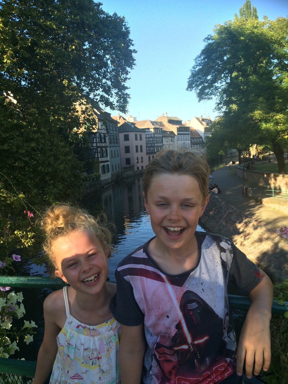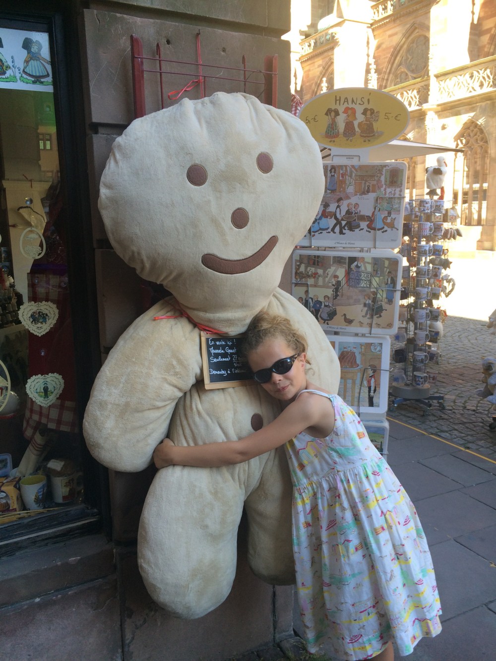 Surprisingly the kids weren’t suffering from cathedral fatigue and enjoyed the look around. Really hot here today at over 35c so Hannah played in the water and hugged a big cookie while Robert wrote his first postcard to himself from France